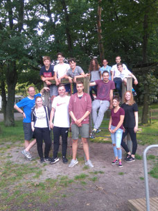 Für Donnerstag stand nach dem Mittagessen noch ein Ausflug ins nah gelegene Verden an, wo wir für drei Stunden den dort ansässigen Kletterpark besuchten. Dieser hatte von 4-10 Metern Höhe alles zu bieten, sodass sich jeder ausprobieren, beweisen und auspowern konnte. Besonders hervorzuheben sind die Nicht-nur-große-Töne-Spucker Jacob, Nick und Kraftpaket Jonas, die es bis zum höchsten und schwierigsten Parcour geschafften haben, sowie Lena, Kassandra und Finja, die eigentlich gar nicht erst klettern wollten und am Ende 4, 6 oder sogar 8 Meter über dem Boden schwebten. Nach dem Abendessen wurde das Beziehen der Zimmer zu einer großen Überraschung, denn für eine Jugendherberge verfügten die Zimmer über einen außergewöhnlich hohen Standard, sodass unsere 12 Teilnehmer sich über frisch renovierte Zimmer mit Bädern freuen durften. Um den Abend gemütlich ausklingen zu lassen, entschied sich die Gruppe, einige Runden „Werwolf“ -auch bekannt als „Amor (im Hexenwäldchen)“ oder „Hauptmann“- zu spielen. Dabei stellte sich heraus, dass „ich bin kein Werwolf einfach, weil ich es weiß“ kein ausreichendes Plädoyer zur Unschuld ist.