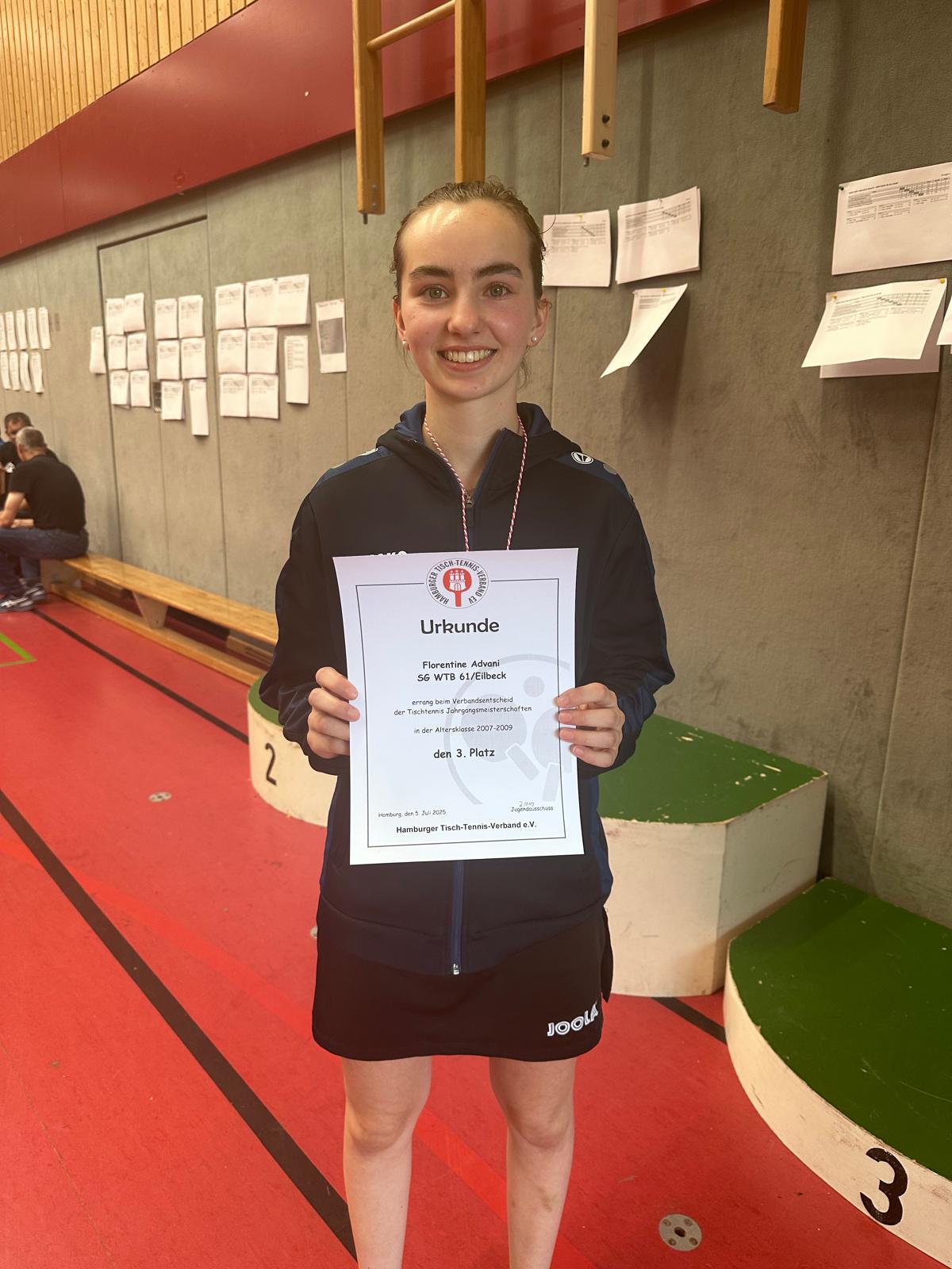 Florentine hat eine gute Gruppenphase mit nur einer Niederlage im fünften Satz gespielt. Leider war an diesem Tag das Glück nicht bei ihr, und sie verloren ebenfalls knapp im fünften Satz im Halbfinale. Trotzdem stand sie glücklich auf dem dritten Platz.